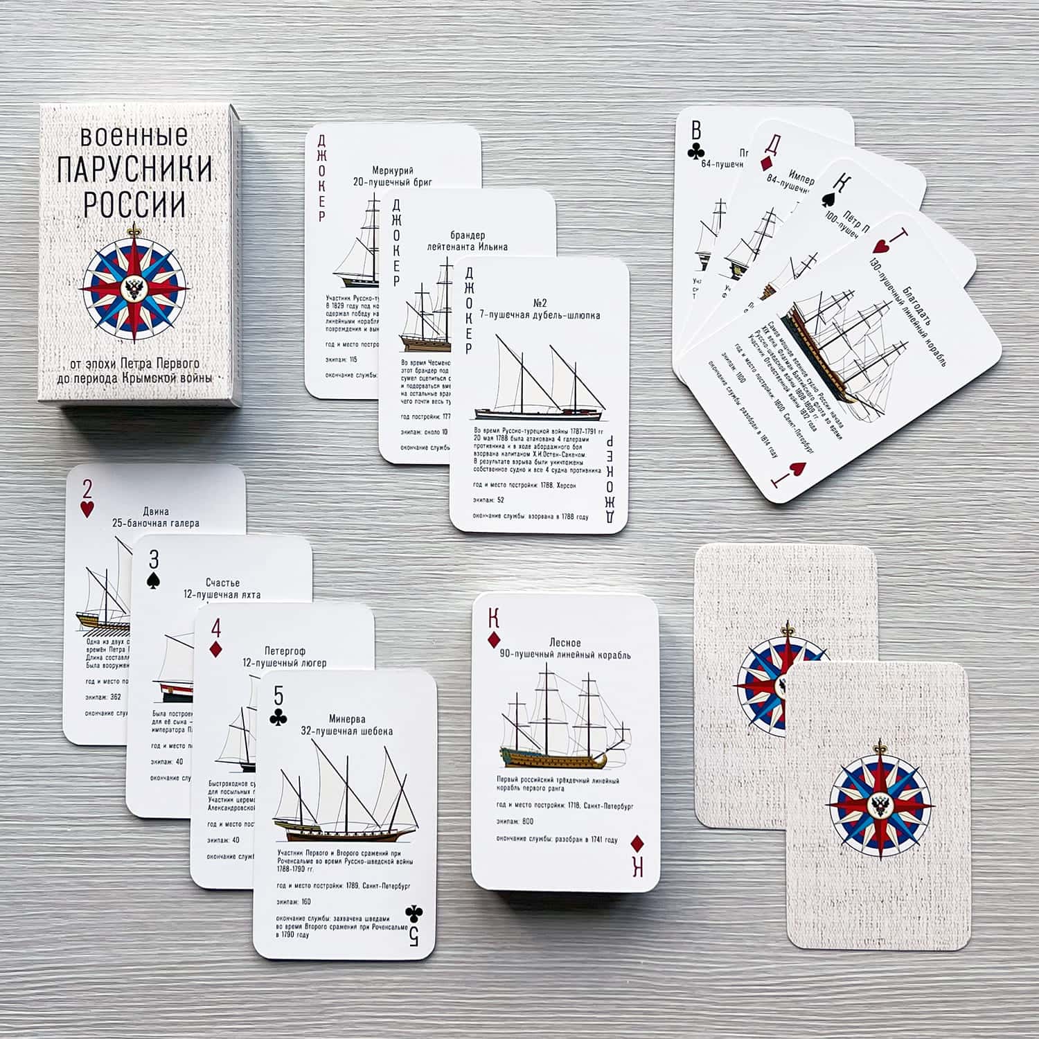 Авторские игральные карты "Парусники. Типы парусного вооружения". Подарок моряку и яхтсмену